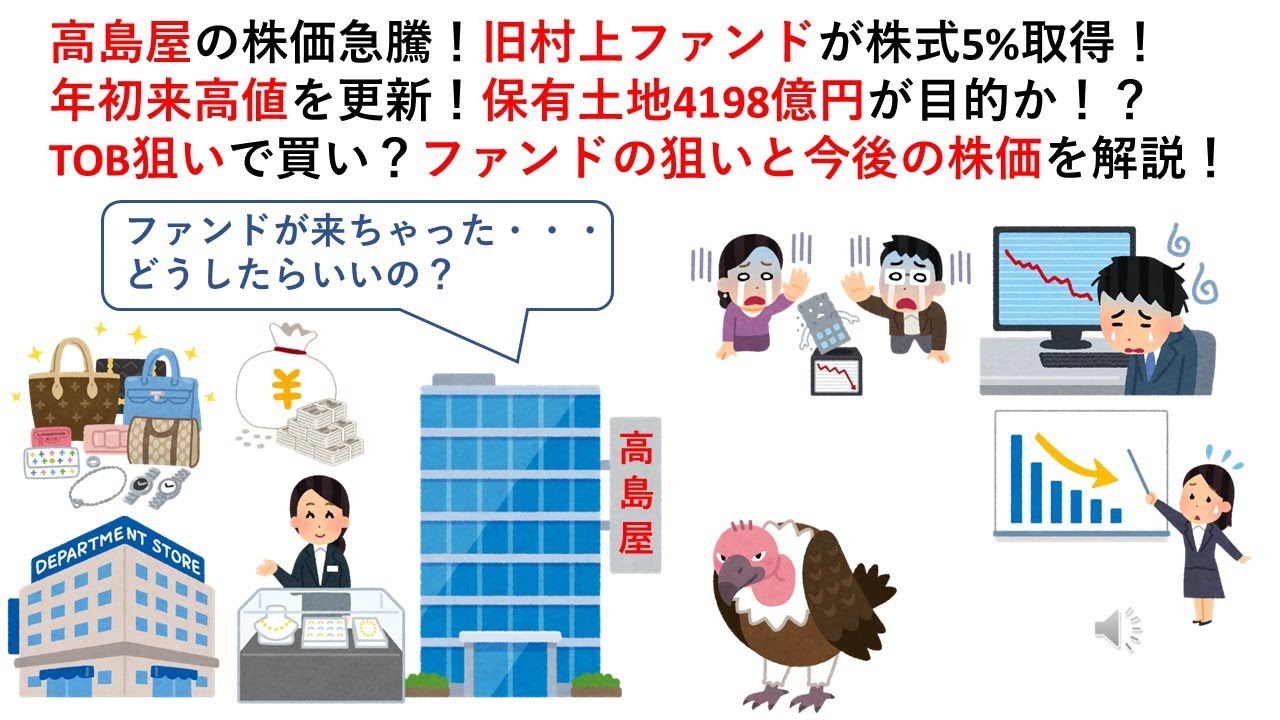 高島屋の株価急騰!旧村上ファンドが株式5%取得!年初来高値を更新!保有土地4198億円が目的か!?TOB狙いで買い?ファンドの狙いと今後の株価を解説! トレンド X Facebook Hatena Bookmark Pocket LINE Copy 2025.09.24 旧村上ファンドが高島屋の株式5%取得について解説しました ブログ:ワーク太郎の雑談部屋 https://worktaro.blogspot.com/ …