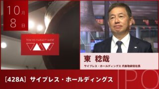 トレンド サイプレス・ホールディングス[428A]IPO 「新規上場企業トップインタビュー」 2025年10月8日、新規上場した サイプレス・ホールディングス 代表取締役社長 東稔哉さん ... 2025.10.08 トレンド