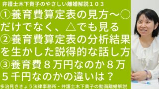 養育費算定表の分析結果を生かした養育費金額の説得的な話し方は?養育費養育費算定表をどう見ると、万未満の養育費金額の主張が説得的に出来る?損しない算定表の見方は?〜弁護士木下貴子のやさしい離婚解説103